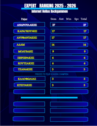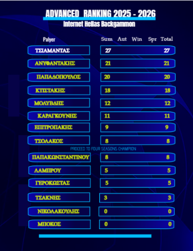 Οι 8 πρώτοι κάθε κατηγορίας προκρίνονται στην τελικη φάση για την ανάδειξη των Πρωταθλητων τους